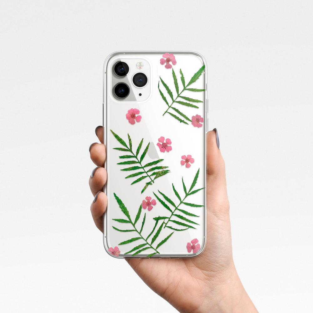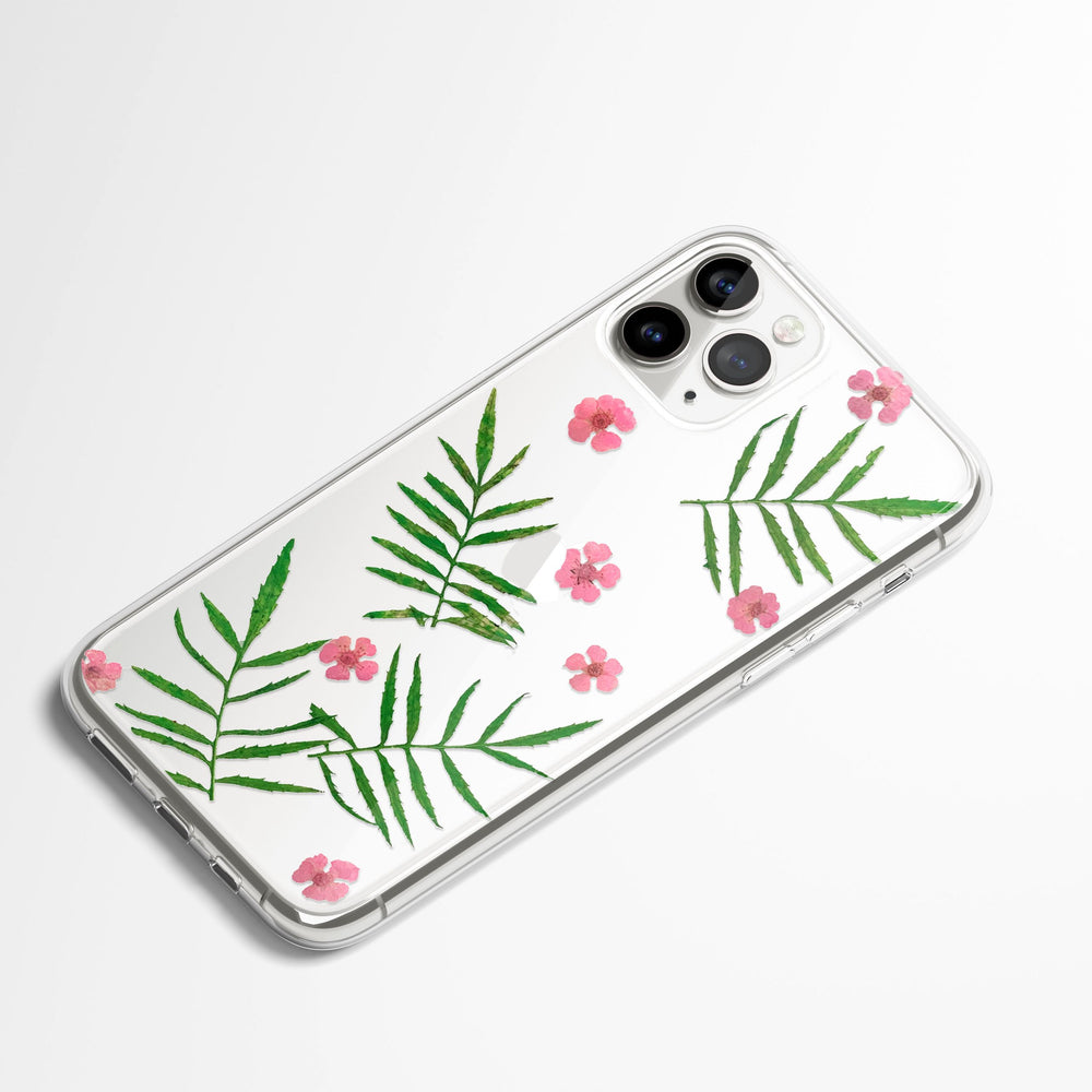 No two leaves or florets mirror each other – your case holds a never-to-be-repeated composition of marigold veins and sorbaria’s lace-like patterns, curated solely for you.