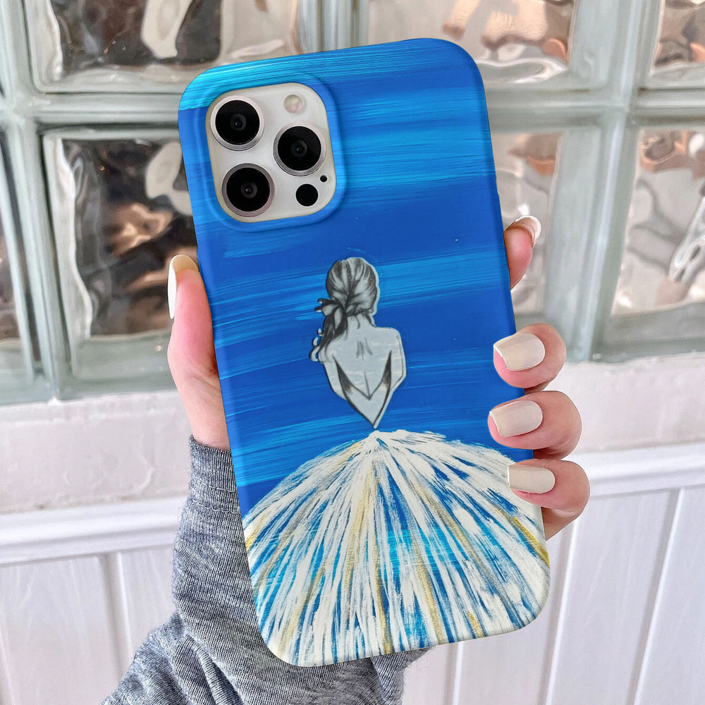 A girl’s silhouette melts into twilight, her gauzy dress swirling like vanilla ice cream under a watercolor sky. I mixed seven blues to capture that perfect moment between sunset and starlight—when the air hums with possibility.